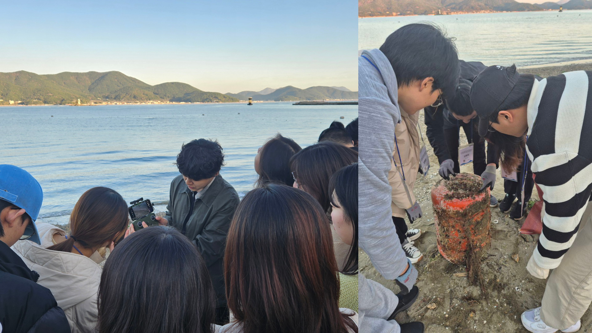 바다기사단 실습에서는 스카이나이츠 프로그램을 통해 드론 기반 해양조사 과정을 시연했다. 상공 촬영과 지상 관측이 결합해 쓰레기 분포를 파악하고 시민과학 데이터로 전환되는 흐름을 이해했다. 해안에서는 바다기사단앱을 활용해 열일바다청소 활동을 하며 실제 해안쓰레기를 기록·업로드하는 모니터링을 체험하며, 시민 참여 기반 데이터 구축 과정의 의미를 확인했다.