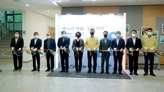 전시는 11월 24일까지 ‘바다의 아픔, 꽃이 되다’라는 주제로 태안군 소원면 만리포에 위치한 유류피해극복기념관 2층 다목적실에서 열린다. (사)동아시아바다공동체 오션의 예술감독인 김정아 작가의 작품 10여 점이 전시되어 있으며, 김 작가의 삽화로 제작된 교재를 통한 체험교육도 진행하고 있다.