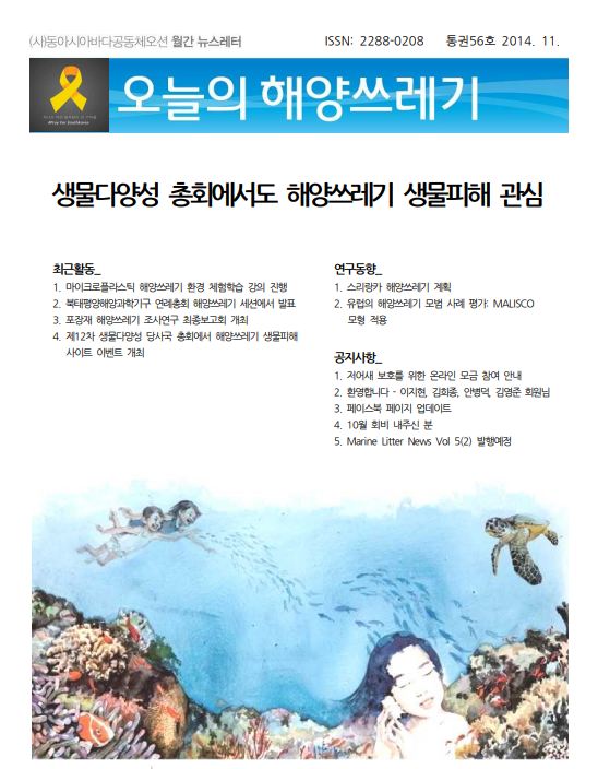 오션의 활동과 전 세계 해양쓰레기 소식을 한 눈에 쉽게 볼 수 있도록 2종의 뉴스레터를 발행합니다. 2010년 1월부터 한글 뉴스레터 '오늘의 해양쓰레기'를 매달, 영문 뉴스레터 'Marine Litter News'를 연 2회 정기 발행하고 있습니다. 이메일로 손쉽게 해양쓰레기 최신 소식을 받아보세요.
