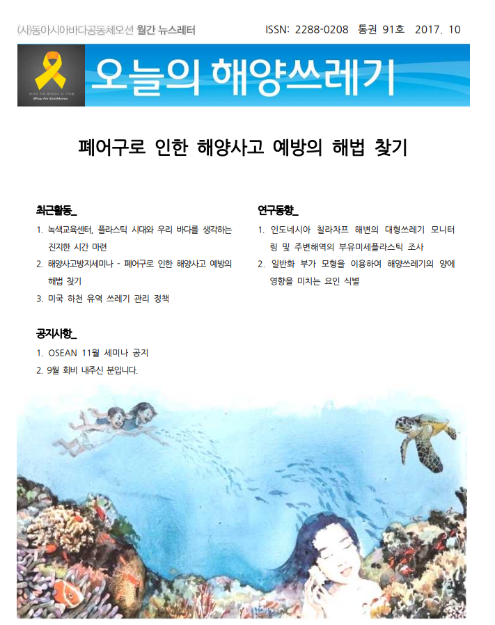 (사)동아시아바다공동체 오션(우 53020) 경상남도 통영시 광도면 죽림5로 55-9 KD빌딩 404호전화 055-643-6381 / 팩스 0303-0001-4478E-mail osean@osean.net / Homepage www.osean.net