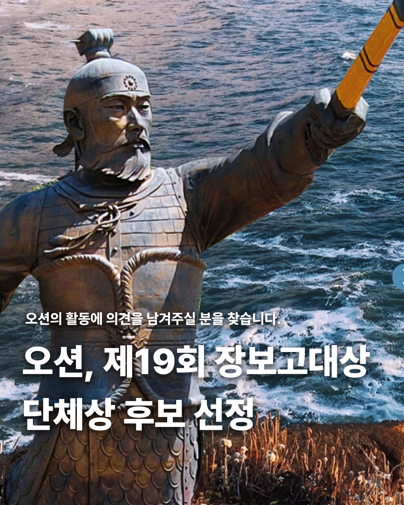 현재 한국해양재단에서는 후보자에 대한 공개 검증이 진행 중입니다. 오션의 활동에 대한 여러분의 의견이 심사 과정에 직접 반영됩니다. 여러분의 진심 어린 평가와 의견은 오션이 앞으로 나아갈 방향을 견고이하는 힘이 됩니다.